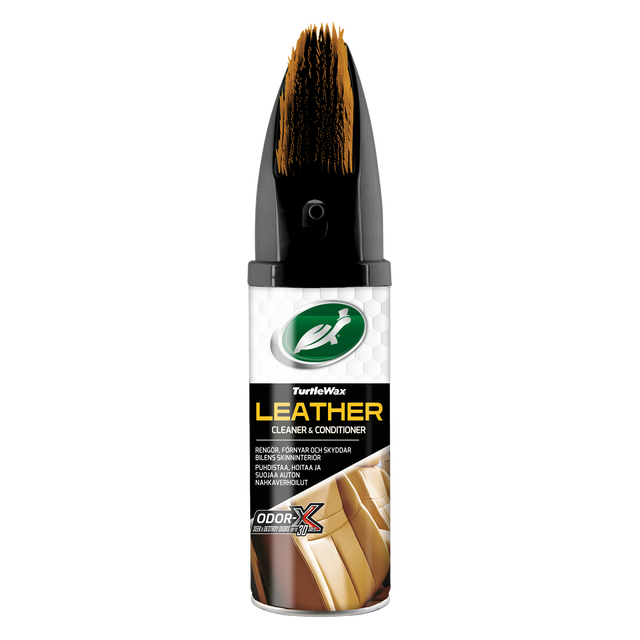 Rengørings- og plejendeskum, der beskytter læder mod blegning, farveændringer og revner. Unik skummetode, der fjerner snavs og pletter fra f.eks. kaffe og blå jeans. Naturlig glans uden glatte rester! Ny læder duft, der varer i uger. Speciel Odor-X teknologi fjerner dårlig lugt på molekylær niveau.