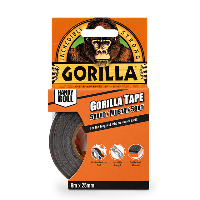 Endelig er klæbemidlet på båndet dobbelt så tykt som på traditionelle sølvbånd og fylder huller på ru, ujævne overflader og giver et superstærkt greb. Denne version er den lidt smalere version af Gorilla Tape. En praktisk rulle der altid klar til at medbringe - perfekt til at have med i din taske eller rygsæk.