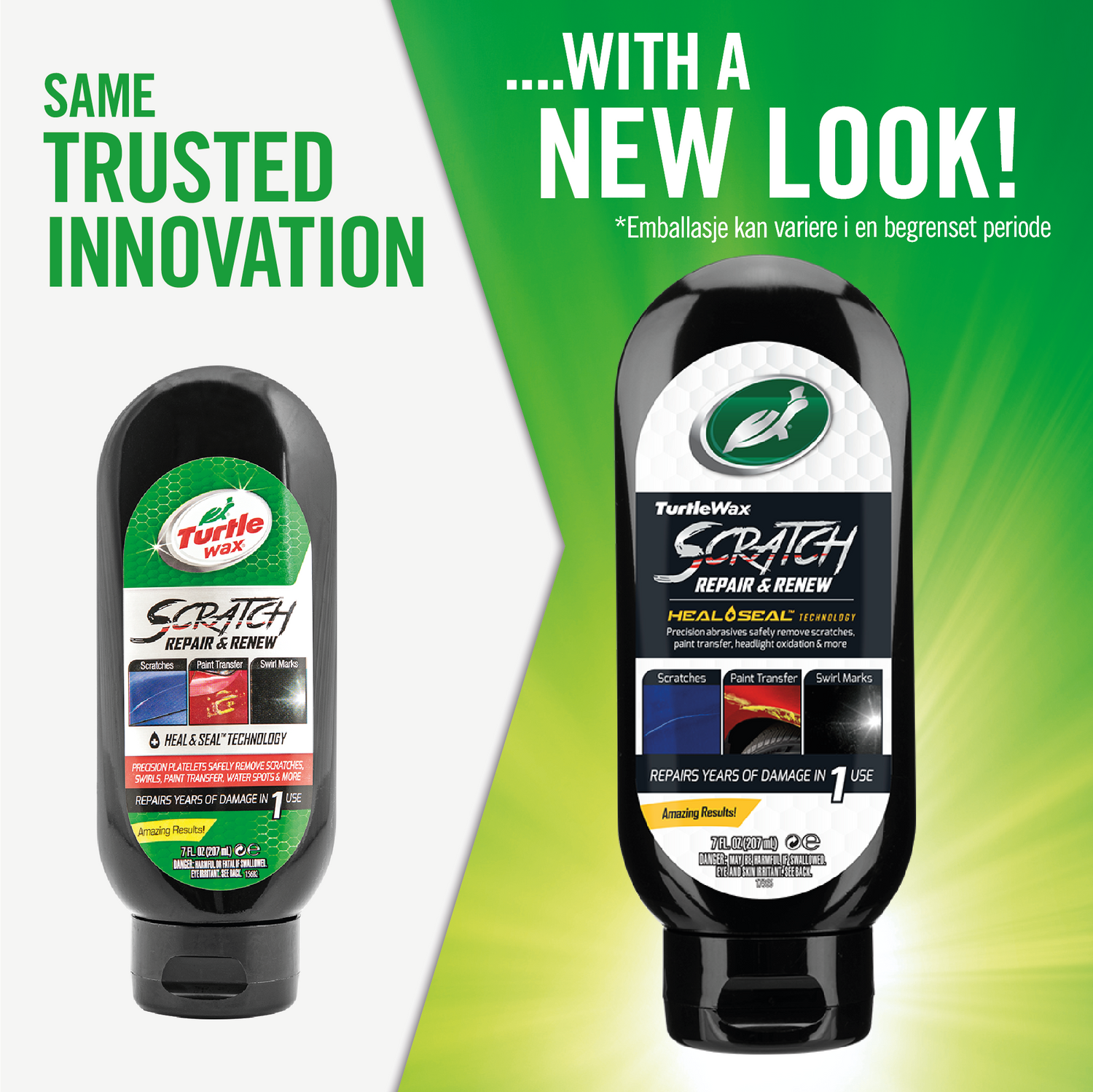 Turtle Wax Scratch Repair & Renew med "Heal & Seal" teknologi tar effektivt bort repor och föroreningar på lacken i ett steg.